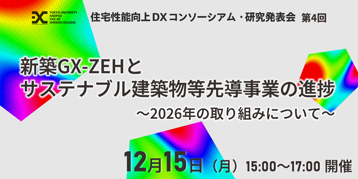 【12月15日開催】住宅性能向上DXコンソーシアム<第4回> 研究発表会 新築GX-ZEHとサステナブル建築物先導事業の進捗 ~2026年の取り組みについて